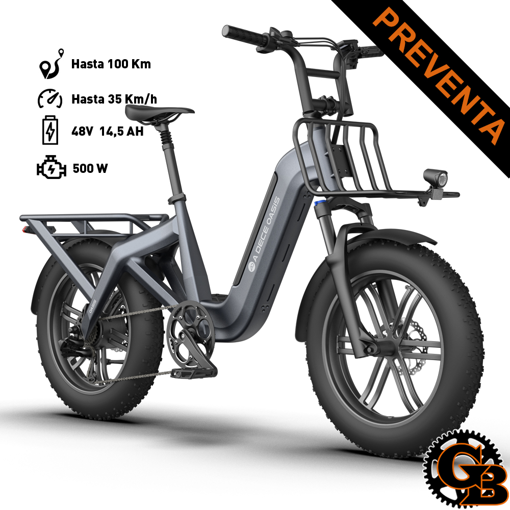 Con un motor de 500w de potencia y velocidad máxima de 35km/h, la Bicicleta Eléctrica OASIS ONE de "A Dece Oasis"  superará tus expectativas respecto al desempeño de una E-Bike apta para todo tipo de terrenos gracias a su neumático de 4" de ancho. Marco corte bajo, suspensión delantera y trasera en el asiento hacen que sea un diseño muy cómodo para tus recorridos